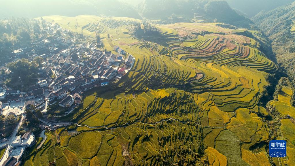 時(shí)下,貴州省丹寨縣境內稻田里的水稻由綠變黃,谷穗因飽滿(mǎn)而彎了腰,微風(fēng)吹來(lái),稻浪翻滾,一片豐收在望的景象。
