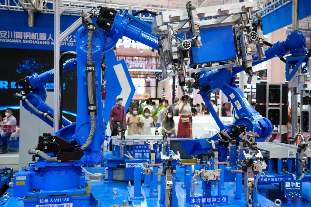 這是在2022世界機器人博覽會(huì )“機器人+制造”區域展示的一款新能源電池盒生產(chǎn)線(xiàn)(8月19日攝)。