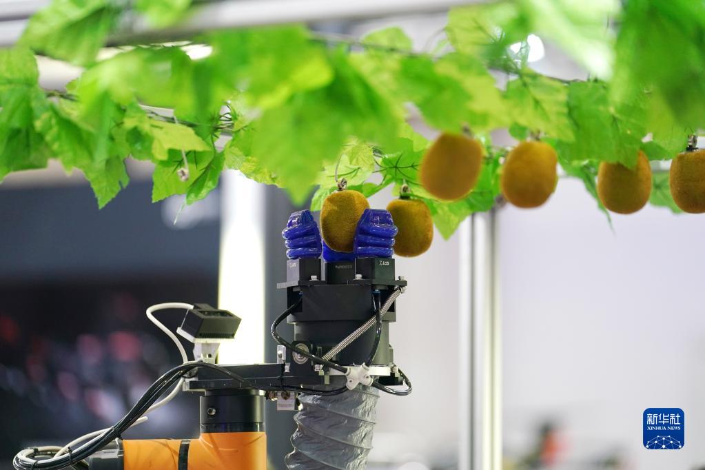 這是在2022世界機器人博覽會(huì )“機器人+農業(yè)”區域展示的一款智能采摘機器人(8月18日攝)。