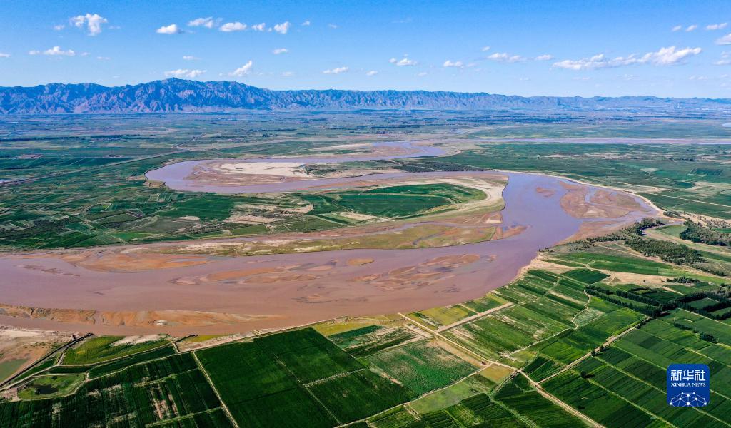 8月15日在內蒙古鄂爾多斯市達拉特旗拍攝的黃河景觀(guān)(無(wú)人機照片)。