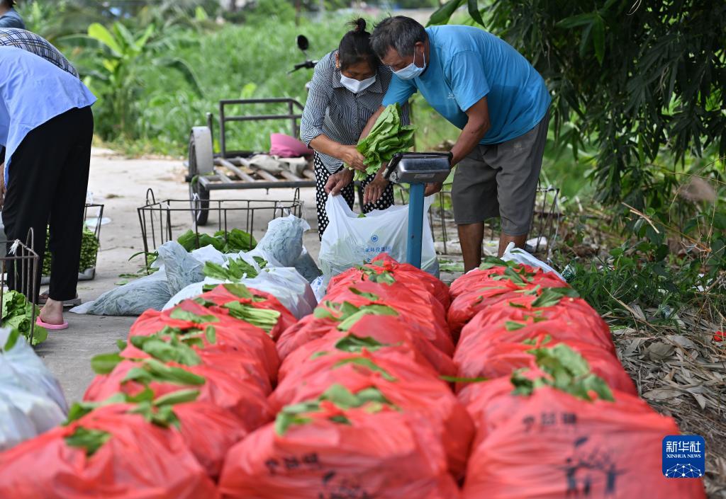 8月22日,三亞市三川葉菜產(chǎn)銷(xiāo)農民專(zhuān)業(yè)合作社的農民將剛采摘的蔬菜打包。