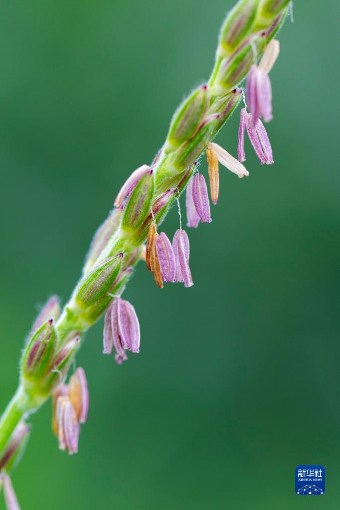 8月14日,在山東省東營(yíng)市廣饒縣李鵲鎮,玉米處在灌漿的關(guān)鍵時(shí)期,這是玉米雄穗的花蕊。