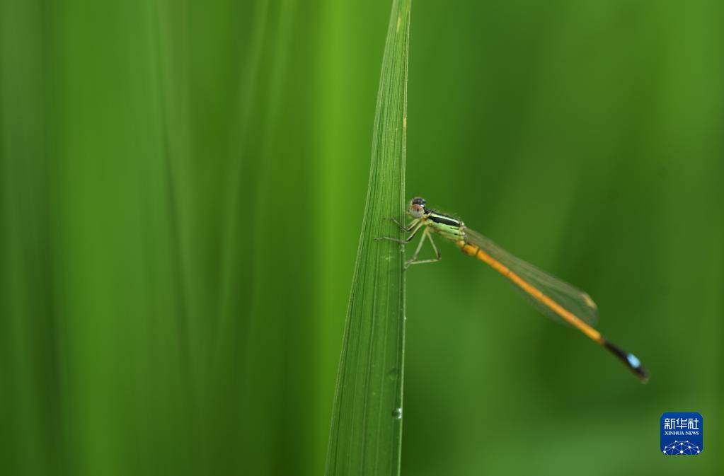 8月18日,在云南省麗江市玉龍縣的稻田里,一只豆娘小憩。