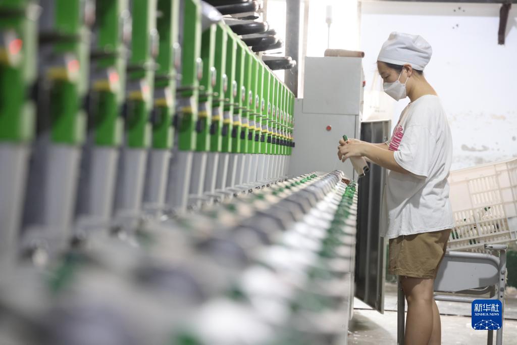 8月22日,在南和區東善友橋村一家紡織廠(chǎng),女工在生產(chǎn)線(xiàn)上忙碌。