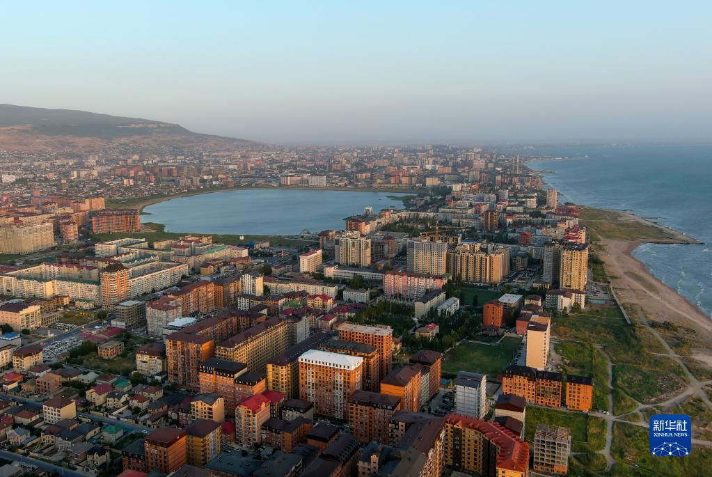 這是8月21日在俄羅斯達吉斯坦共和國馬哈奇卡拉市航拍的海濱風(fēng)光。新華社/塔斯社