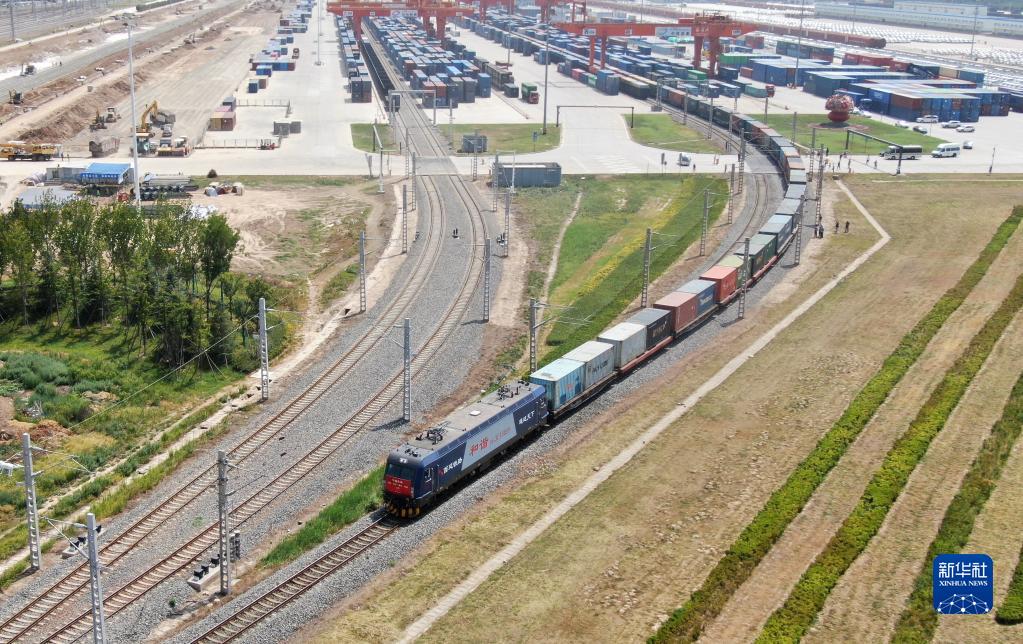 8月23日,陜西首趟中越國際貨運班列由西安國際港站駛出開(kāi)往越南河內(無(wú)人機照片)。