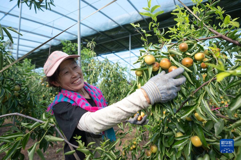 近日,河北省黃驊市滕莊子鎮的大棚冬棗相繼成熟,農民抓緊時(shí)機采摘。黃驊市有“中國冬棗之鄉”之稱(chēng)。近年來(lái),當地通過(guò)農業(yè)數字化建設、品種改良等措施,推動(dòng)冬棗產(chǎn)業(yè)高質(zhì)量發(fā)展,助力鄉村振興。