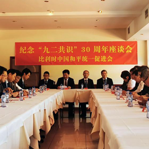 比利時(shí)僑團23日在貝爾瑟勒舉行座談,紀念“九二共識”達成30周年。比利時(shí)主要僑團負責人和各界僑胞代表約50人參加當天的座談。