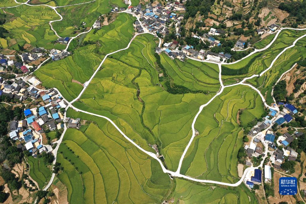 8月24日拍攝的貴州省遵義市余慶縣大烏江鎮涼風(fēng)村稻田(無(wú)人機照片)。