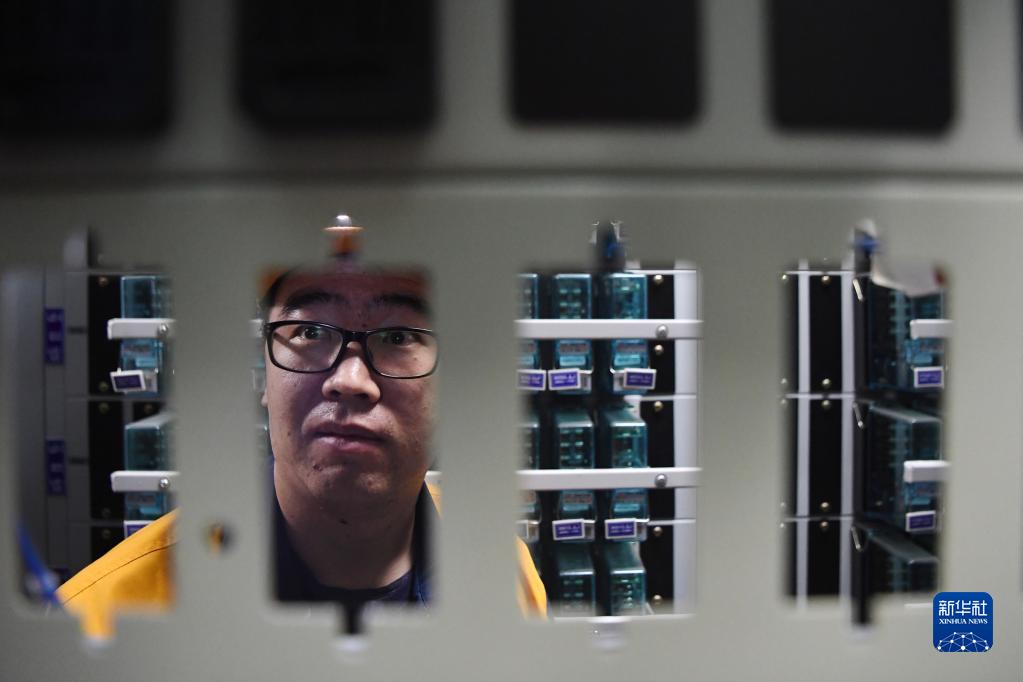 8月25日凌晨,嘉峪關(guān)電務(wù)段信號工張源芝在蘭新鐵路玉石站查看設備運行情況。