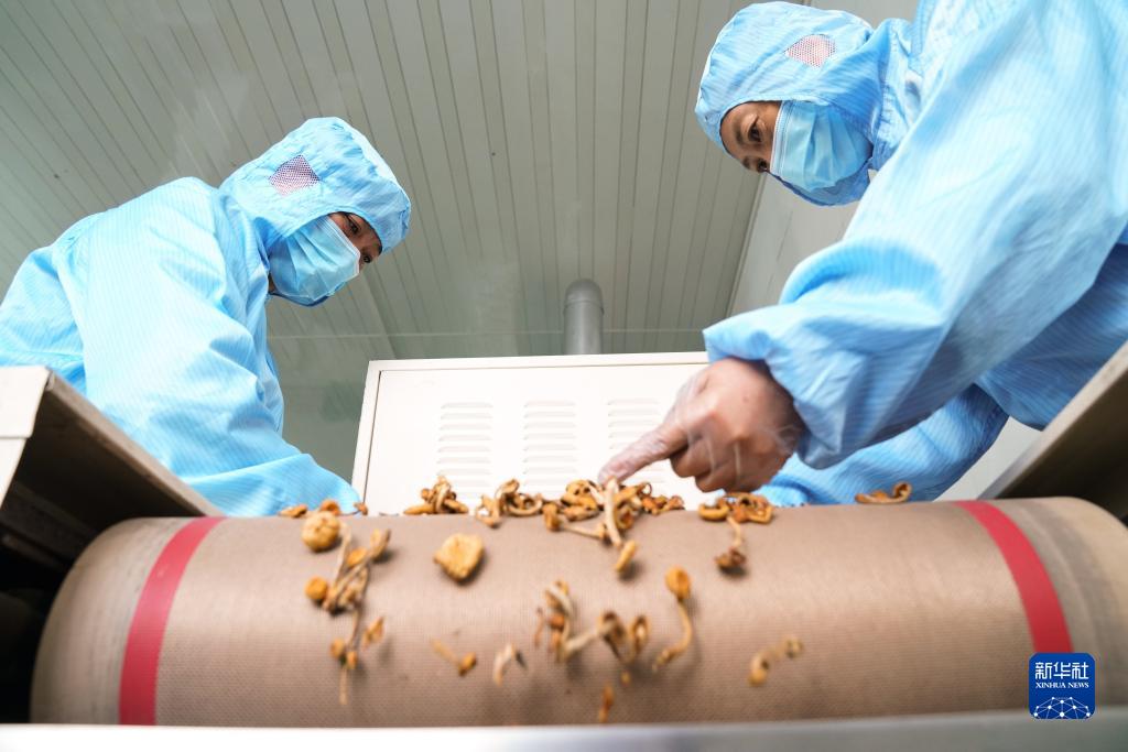 在黑龍江省大興安嶺地區加格達奇區一家山野珍品科技開(kāi)發(fā)企業(yè),工人對林下綠色有機食品進(jìn)行加工作業(yè)(8月24日攝)。
