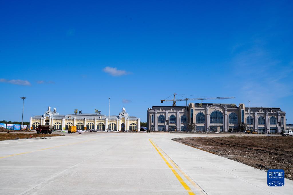 這是漠河機場(chǎng)改擴建項目建設現場(chǎng)(8月26日攝)。