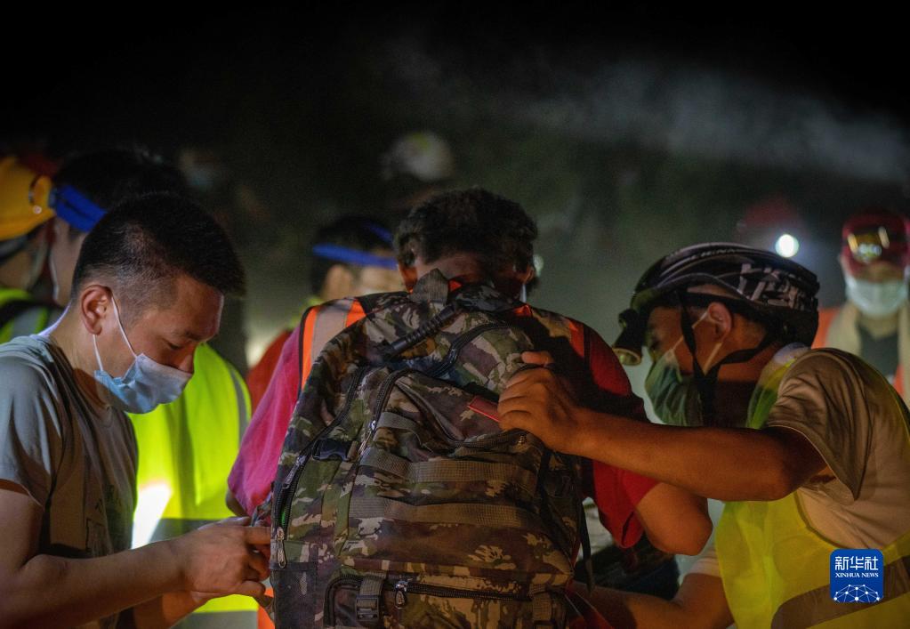 8月26日凌晨,物資站點(diǎn)的志愿者為即將上山的“摩托大軍”志愿者準備物資。