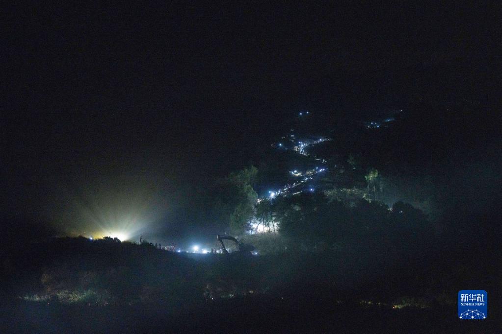 8月26日凌晨,志愿者隊伍向山頂運送物資。