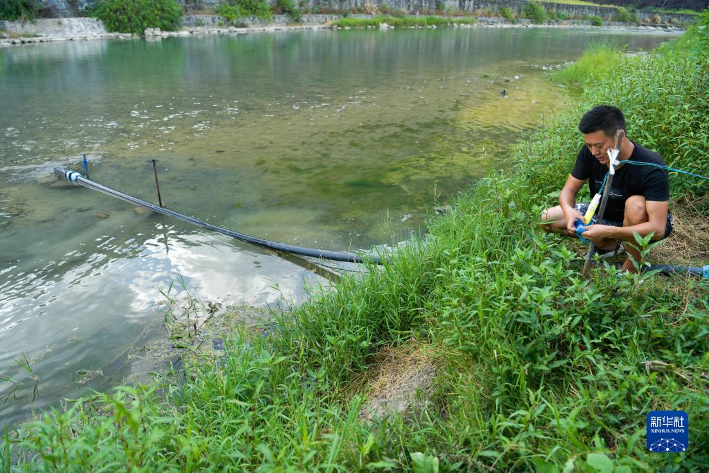 8月24日,在遵義市桐梓縣獅溪鎮大興村,種植專(zhuān)業(yè)合作社的負責人在抽水灌溉稻田。
