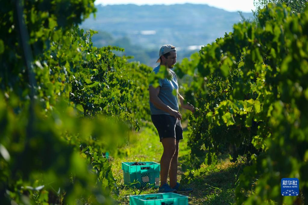 8月26日,在馬耳他莫斯塔,一名男子在葡萄園里采摘葡萄。
