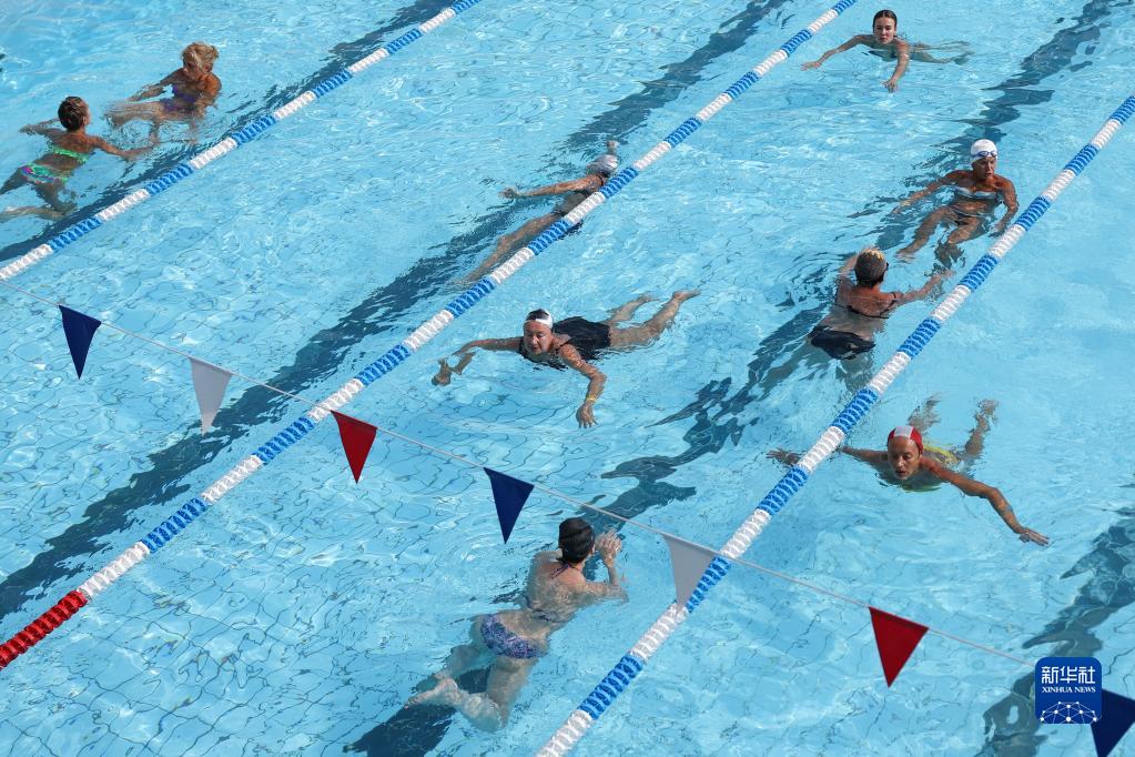 8月25日,人們在俄羅斯莫斯科的露天游泳池游泳。
