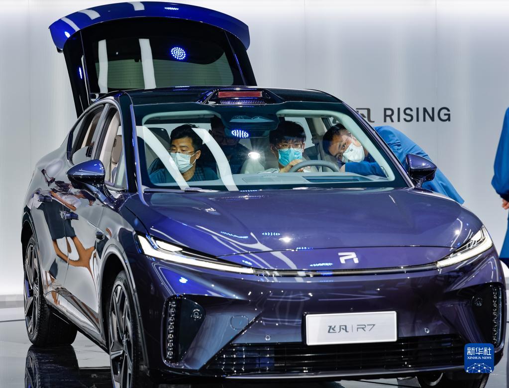 8月26日,在第二十五屆成都國際汽車(chē)展覽會(huì )的飛凡汽車(chē)展臺,參觀(guān)者在體驗純電動(dòng)中大型SUV飛凡R7。