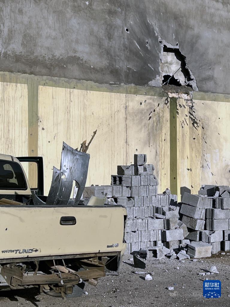 這是8月27日在利比亞首都的黎波里拍攝的損壞的墻壁。