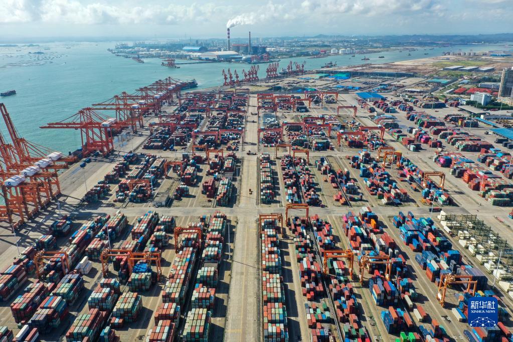 這是8月27日拍攝的位于平陸運河出??诟浇谋辈繛掣蹥J州港區大欖坪作業(yè)區(無(wú)人機照片)。