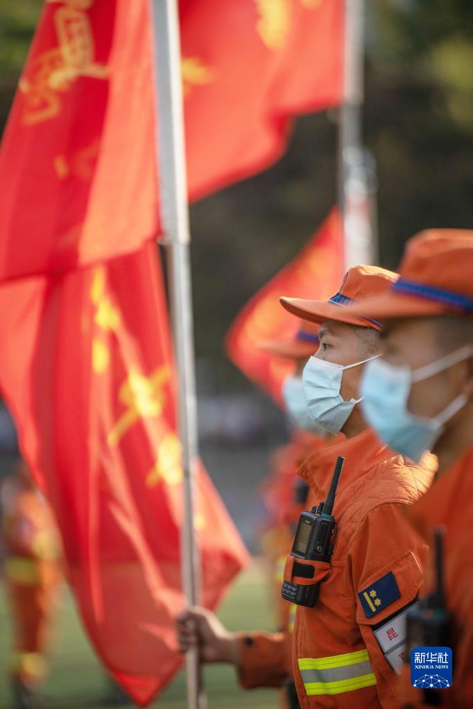 8月28日,在重慶市北碚區,森林消防官兵在撤離前集結。