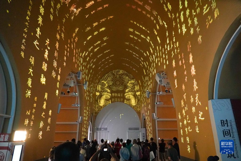 8月28日,觀(guān)眾在北京鼓樓一層觀(guān)看沉浸光影秀。