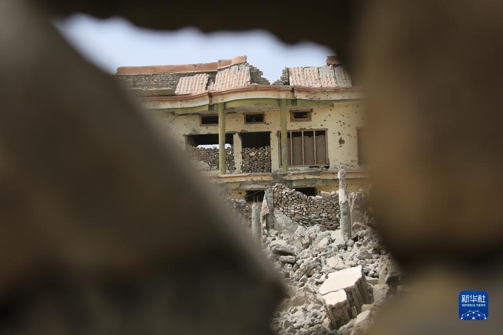 這是8月23日拍攝的阿富汗南部赫爾曼德省桑金地區遭到美軍空襲后留下的廢墟。