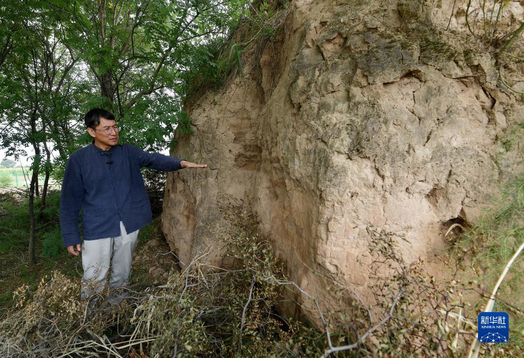 南佐遺址聯(lián)合考古隊領(lǐng)隊、中國人民大學(xué)歷史學(xué)院考古文博系教授韓建業(yè)在考察遺址核心區內分布的大型夯土臺情況(8月23日攝)。