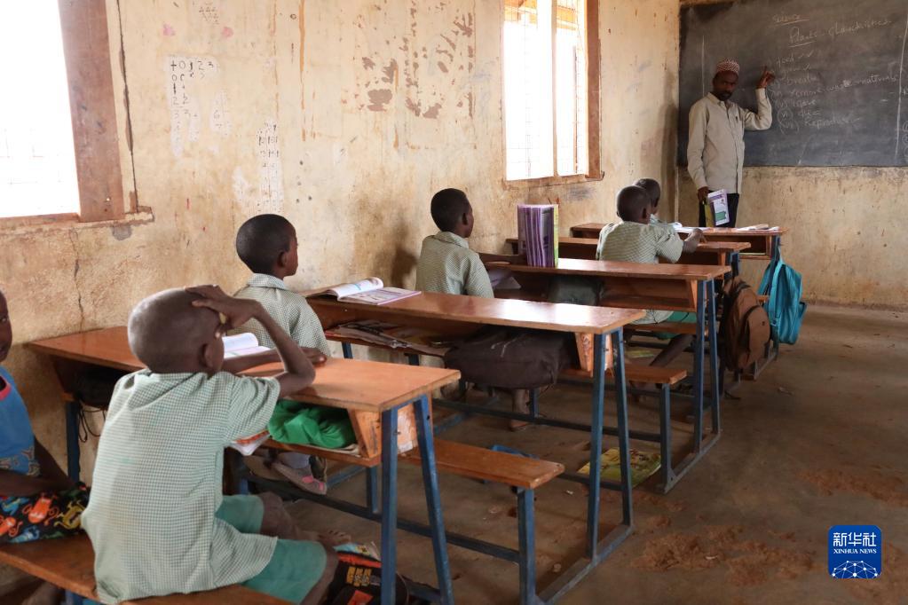 8月26日,在遭受旱災的肯尼亞馬薩比特郡萊薩米斯鎮,孩子們在學(xué)校上學(xué)。受干旱的影響,該校有一半的學(xué)生無(wú)法上學(xué)。