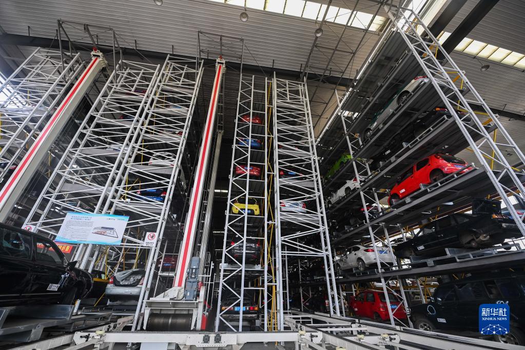8月30日,在湖州市吳興區東林鎮一家機動(dòng)車(chē)回收拆解企業(yè)的智能化立體存儲庫內,等待拆解的機動(dòng)車(chē)有序停放在存儲架上。