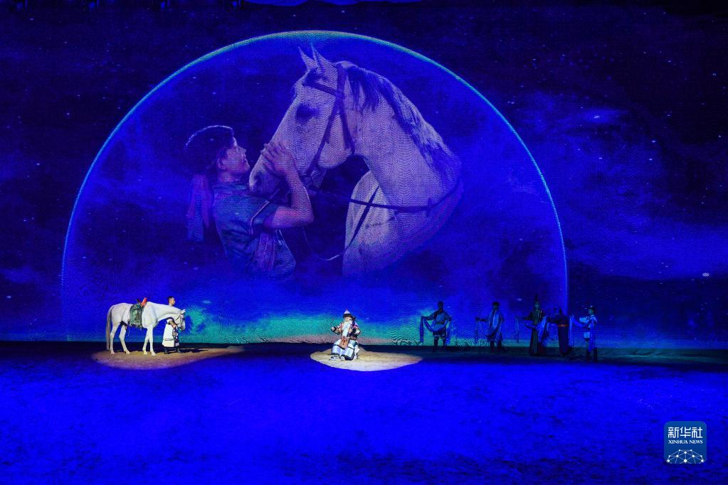 當日,由內蒙古藝術(shù)劇院出品的大型馬舞劇《千古馬頌》在呼和浩特上演。該劇以民族馬術(shù)、馬背雜技、舞馬表演、蒙古族歌舞樂(lè )等藝術(shù)元素為主要表現形式,融合了現代高科技舞臺技術(shù),體現了人與馬、自然和諧共存的精神。