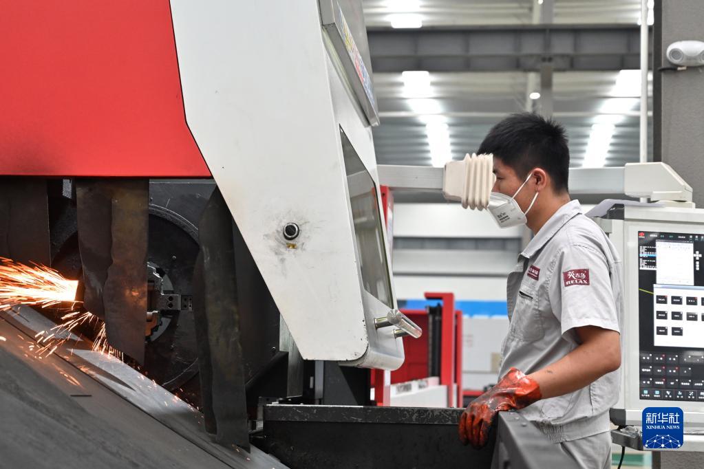 8月30日,在日照經(jīng)濟技術(shù)開(kāi)發(fā)區一家企業(yè)加工車(chē)間,一名工人對電動(dòng)跑步機管材進(jìn)行鐳射加工。