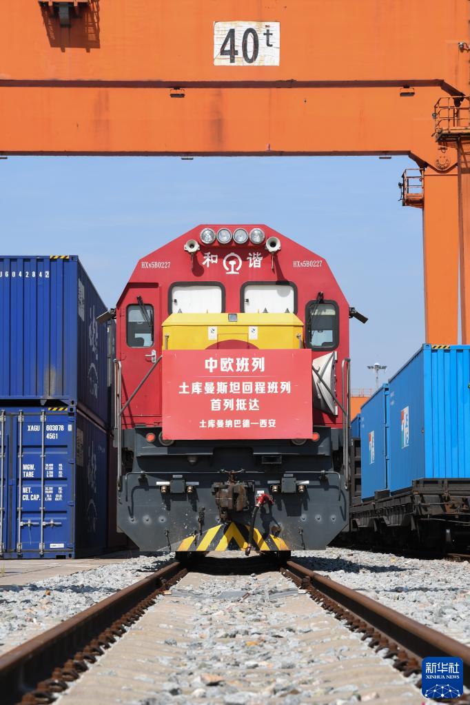 該趟專(zhuān)列所載貨物共計42個(gè)集裝箱,重850噸。專(zhuān)列采取“海鐵聯(lián)運”的方式,由土庫曼巴希港乘船出發(fā),經(jīng)哈薩克斯坦阿克套港換裝鐵路,由霍爾果斯口岸入境中國,最終抵達西安國際港站。