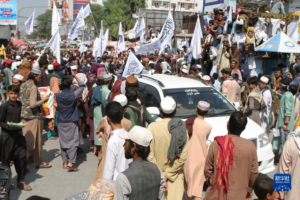 8月31日,時(shí)值美軍撤離阿富汗一周年之際,人們走上阿富汗楠格哈爾省首府賈拉拉巴德街頭。