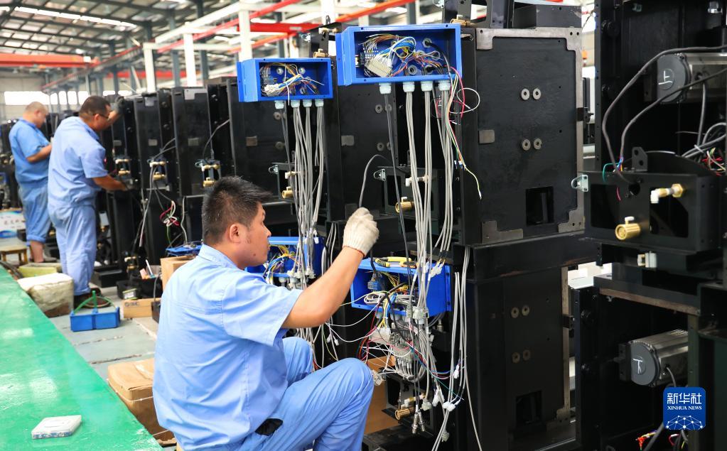 8月31日,在江蘇連云港高新區海州工業(yè)園,一家機械制造企業(yè)的工人在車(chē)間內忙碌。