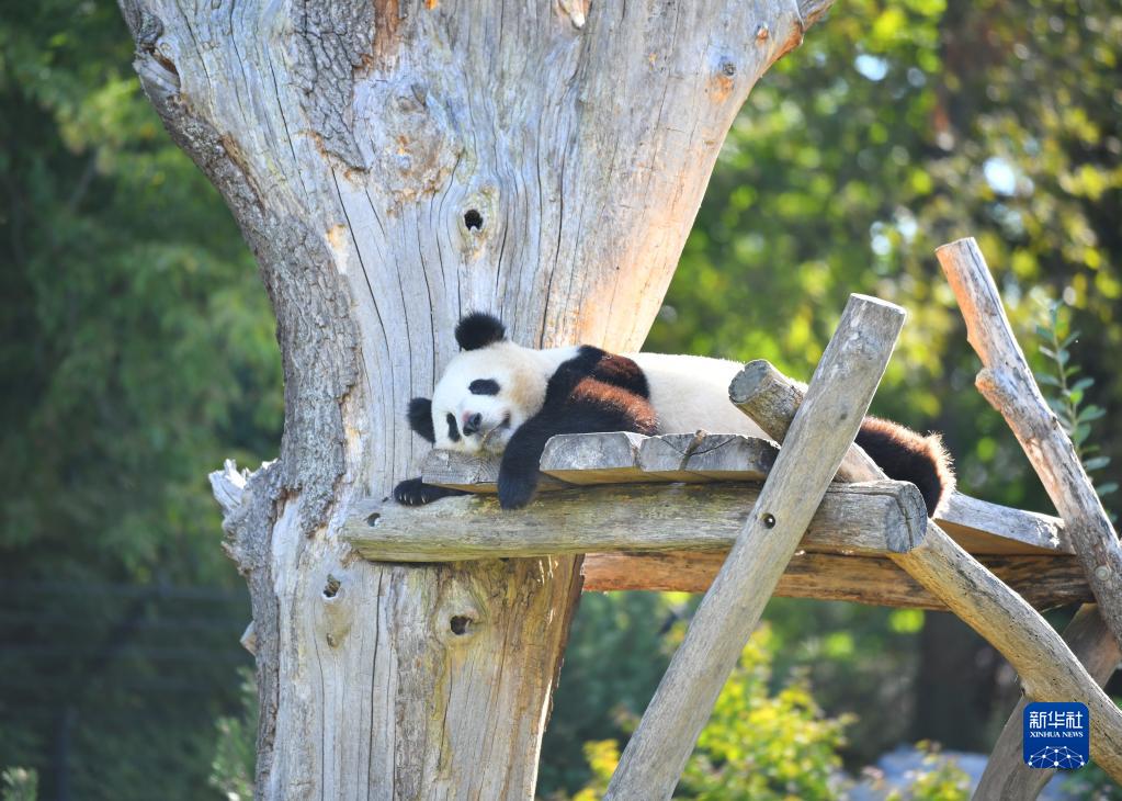 這是8月31日在德國柏林動(dòng)物園拍攝的大熊貓“夢(mèng)圓”。