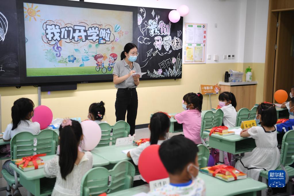 9月1日,河北雄安新區容東片區容和悅容小學(xué)一年級新生在上開(kāi)學(xué)第一課。容東片區是雄安新區實(shí)施回遷安置的首個(gè)新建回遷片區。