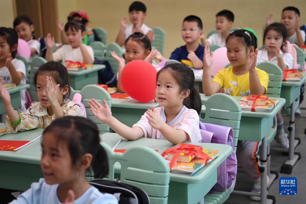 9月1日,河北雄安新區容東片區容和悅容小學(xué)一年級新生在上開(kāi)學(xué)第一課。容東片區是雄安新區實(shí)施回遷安置的首個(gè)新建回遷片區。