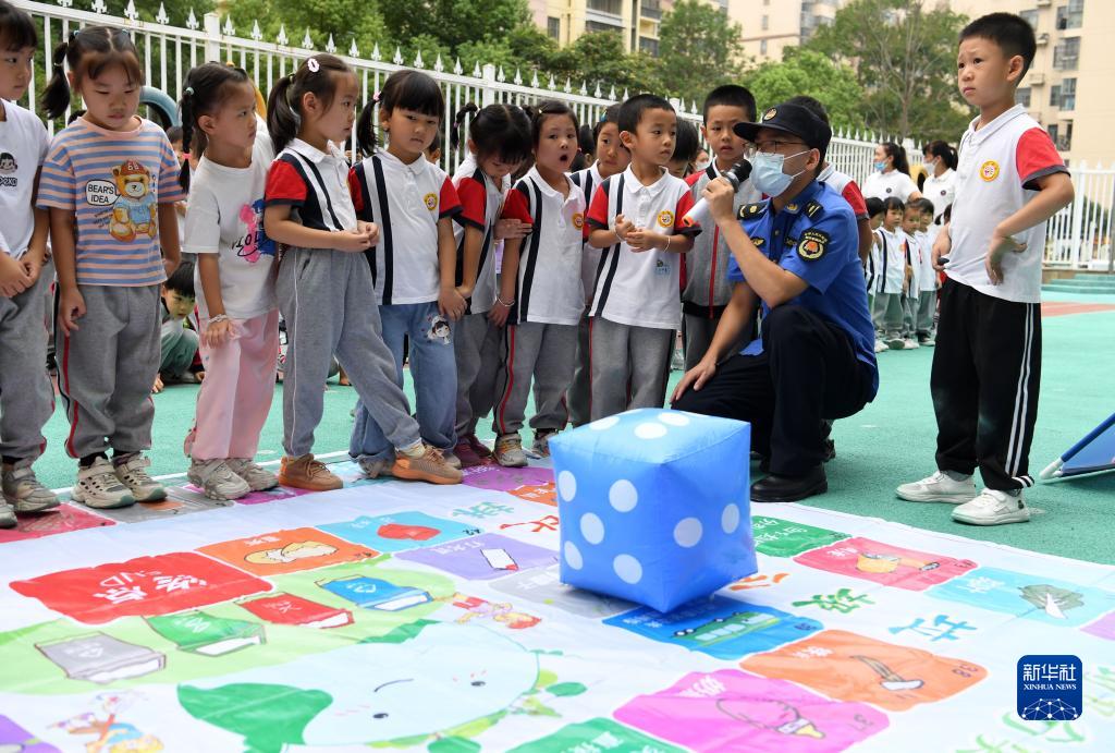 9月1日,安徽省合肥市包河區常青街道淝南社區淝南家園幼兒園小朋友在開(kāi)學(xué)第一課上參與垃圾分類(lèi)環(huán)保小游戲。