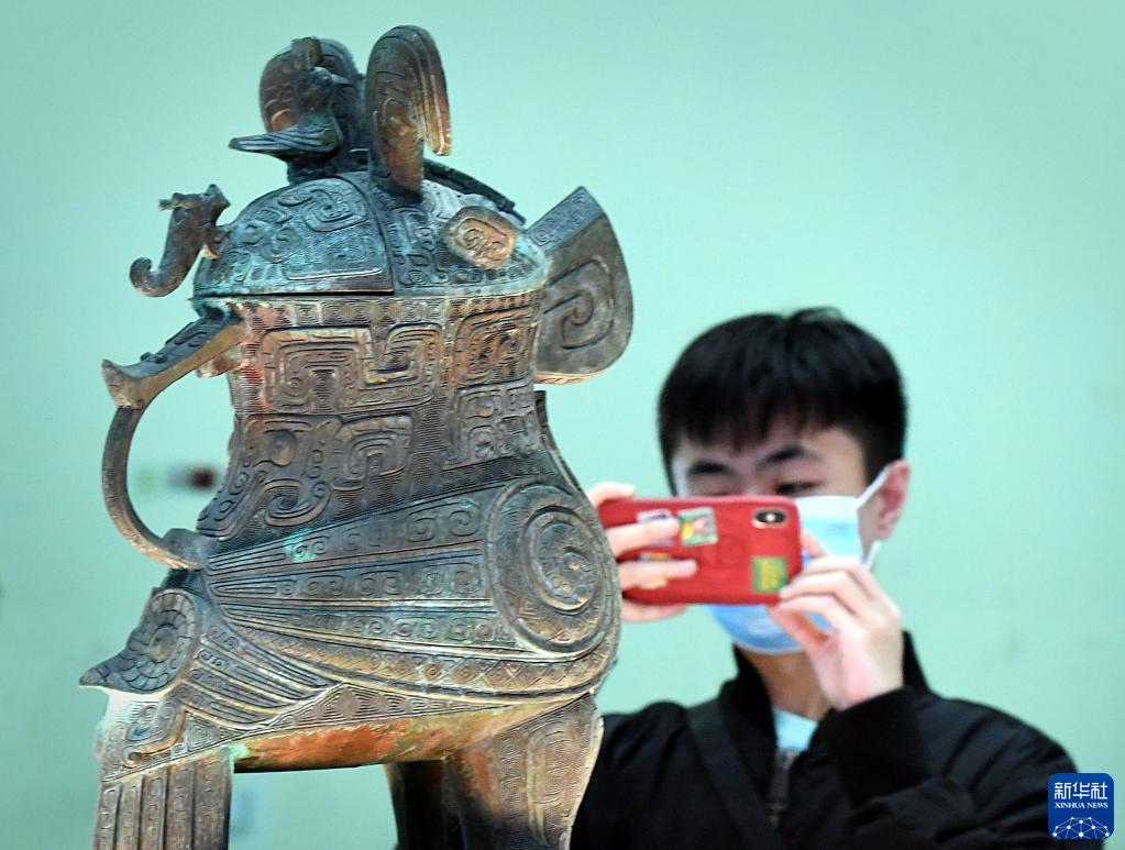 9月1日,參觀(guān)者在“博博會(huì )”上拍攝“婦好鸮尊”復制品。