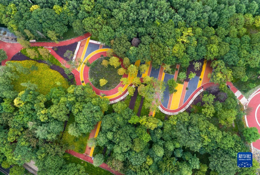 9月1日拍攝的昆明公務(wù)員林小游園一景(無(wú)人機照片)。