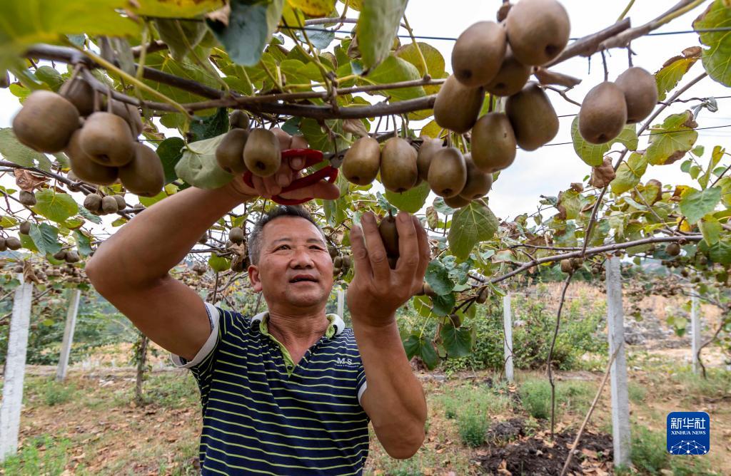 9月1日,村民在貴州省黔西市定新鄉青杠村采收獼猴桃。