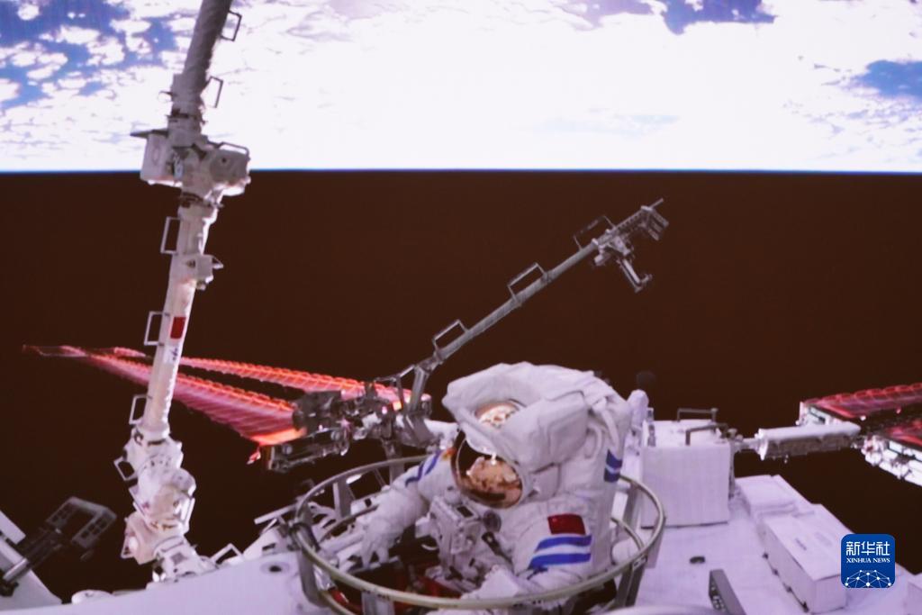 9月2日在北京航天飛行控制中心拍攝的神舟十四號航天員陳冬結束出艙任務(wù)正在返回的畫(huà)面。