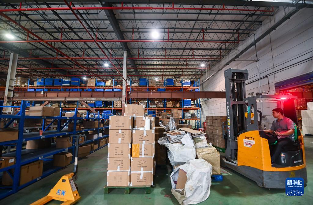 9月2日,在杭州綜合保稅區一家跨境保稅倉內,工作人員在搬運跨境電商保稅進(jìn)口商品?!皵底志C?!本C合服務(wù)平臺提升了跨境保稅倉貨物的流轉效率,為企業(yè)節省時(shí)間和費用。
