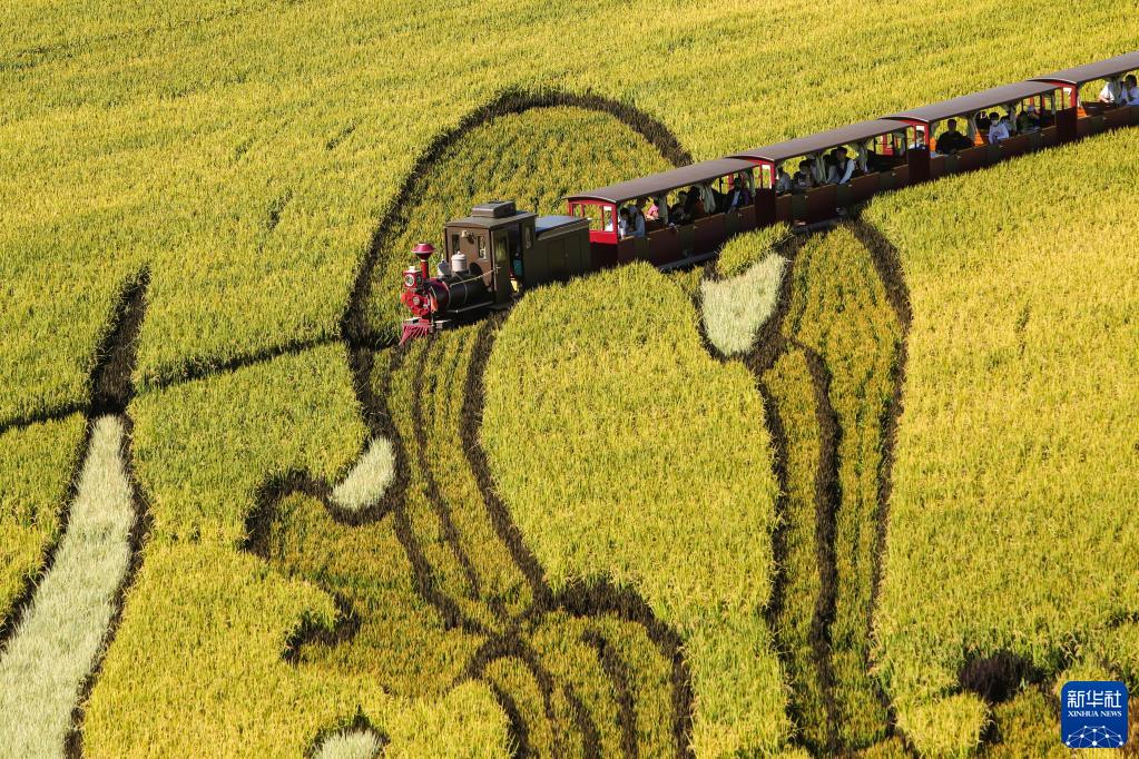 9月1日,游客在“稻夢(mèng)空間”景區乘坐“小火車(chē)”游玩。
