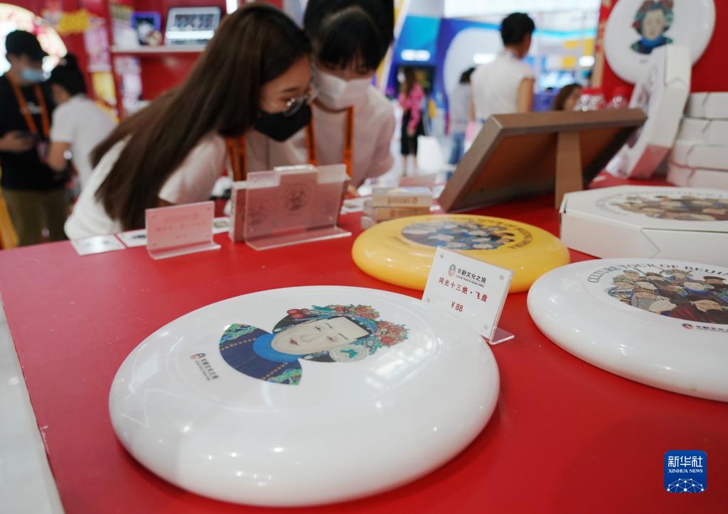 這是9月2日在服貿會(huì )文旅服務(wù)專(zhuān)題展區拍攝的以《同光十三絕》為設計靈感的文創(chuàng )飛盤(pán)。新華社記者 張晨霖 攝
