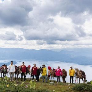 8名摩梭人,10匹騾馬。與傳統的貨運馬幫不同,“瀘沽湖馬幫”以載客騎游為主,開(kāi)辟了“湖畔走馬”和“山野扎營(yíng)”兩條騎游路線(xiàn)。馬幫帶領(lǐng)游客在山頂扎營(yíng)過(guò)夜、野外用餐。人們躺在山巔帳篷里,俯瞰瀘沽湖全景、遠眺藍天白云和山巒,晚上數星星……