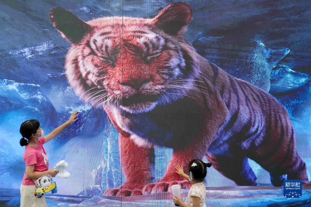 9月3日,兩名小朋友在首鋼園區觀(guān)看巨幅顯示屏上的動(dòng)畫(huà)。