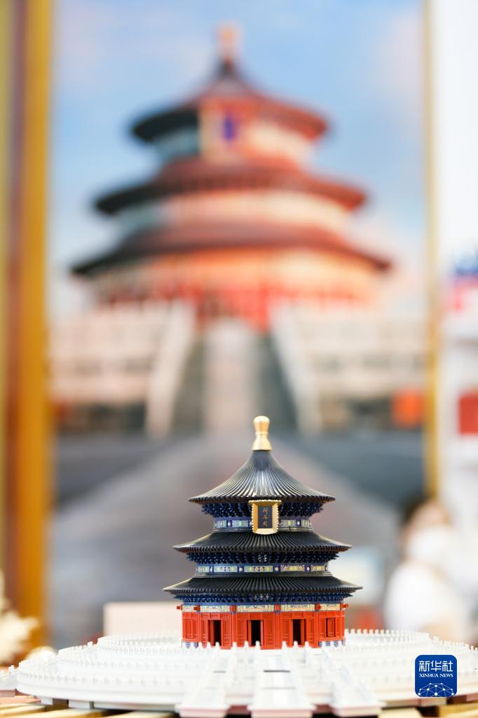 9月1日在2022年中國國際服務(wù)貿易交易會(huì )文旅服務(wù)專(zhuān)題展區拍攝的天壇祈年殿模型。