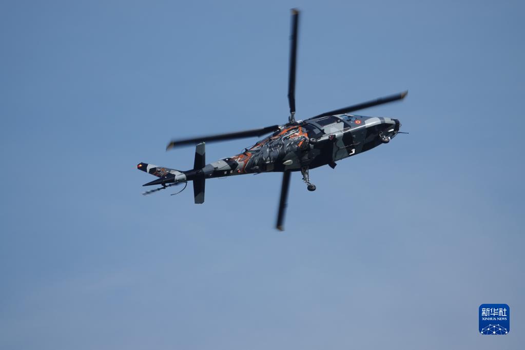 9月3日,一架直升機在奧地利“空中力量-2022”航展上表演。